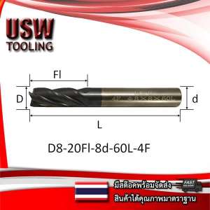 - Endmill Carbide LV 4ฟัน ขนาด 8 มม. เอ็นมิล 4 ฟัน ดอกกัดคาร์ไบด์สำหรับงานเหล็ก งานสเเตนเลส ดอกกัดคาร์ไบด์ ทนทานต่อการสึกกร่อน เเข็งเเรง เหมาะกับงานเหล็ก